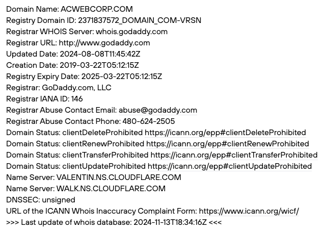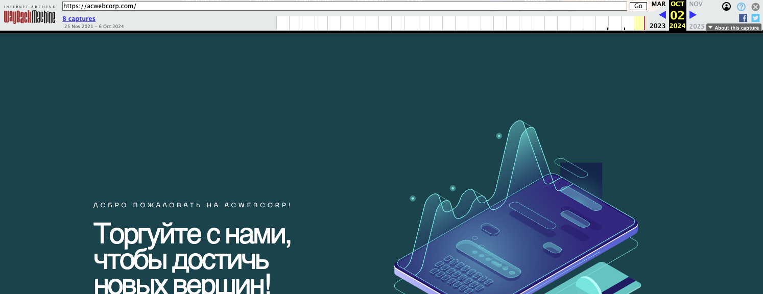 Нам известно, что данная платформа доступна и по другому адресу – acwebcorp com. Этот домен был зарегистрирован в 2019-м году.