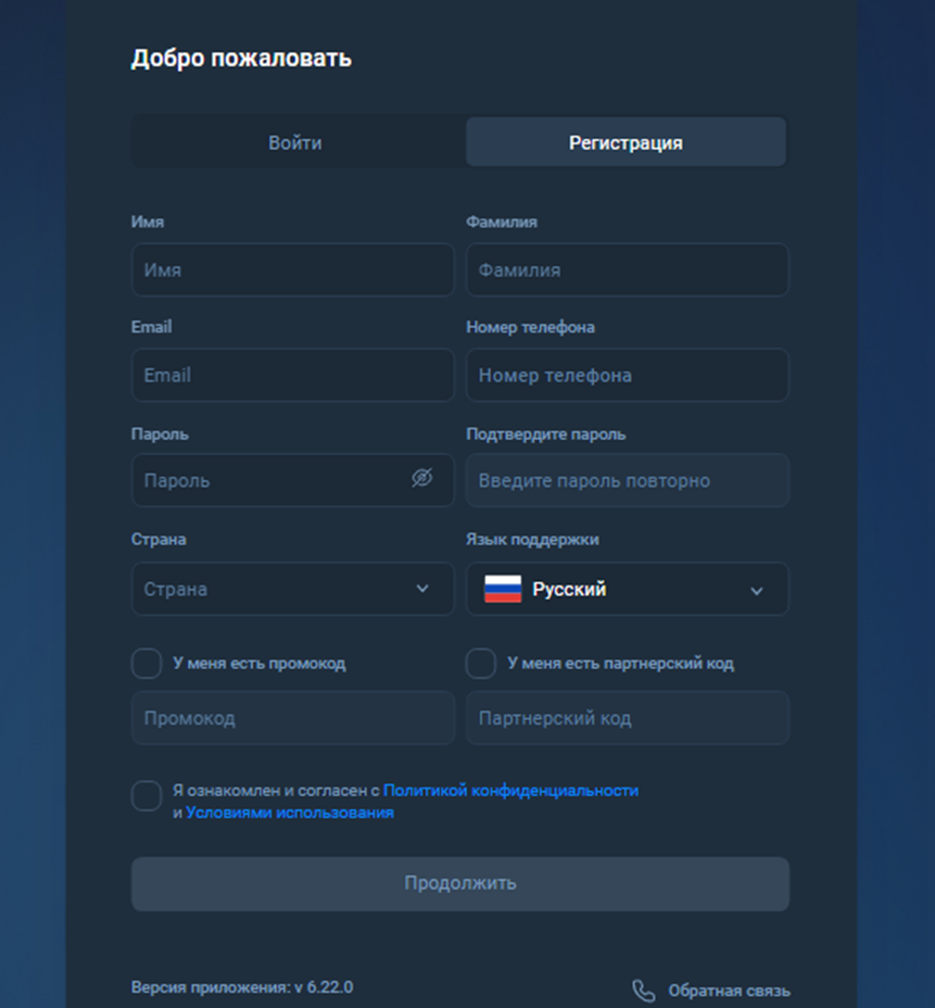 Дизайн формы регистрации не отличается от других скам-зеркал. Пользователь должен указать почтовый адрес и номер телефона, которые в дальнейшем будут использовать для рассылок и звонков, чтобы любыми методами заставить пополнить счет.