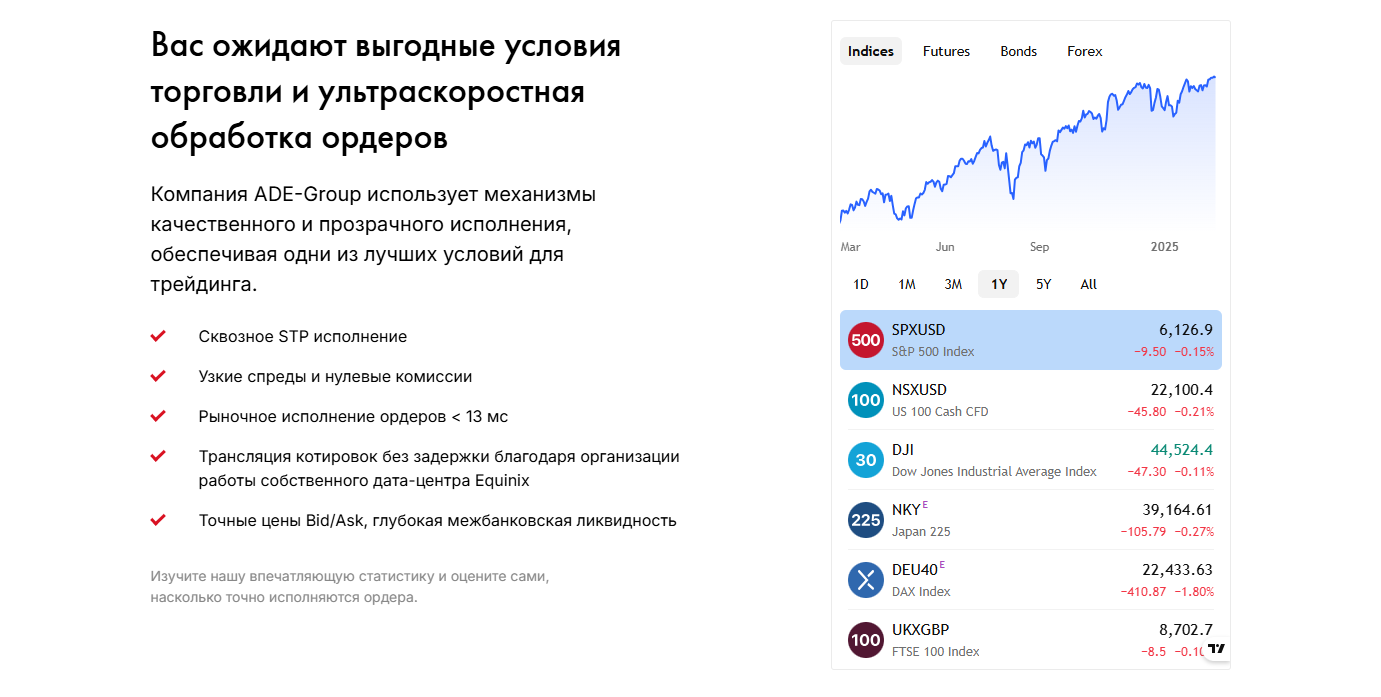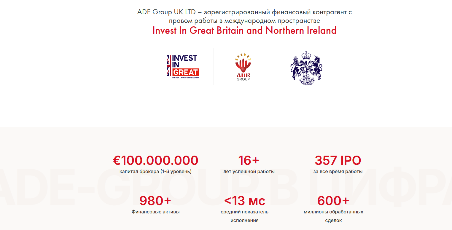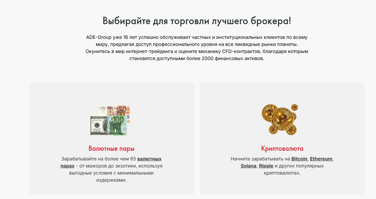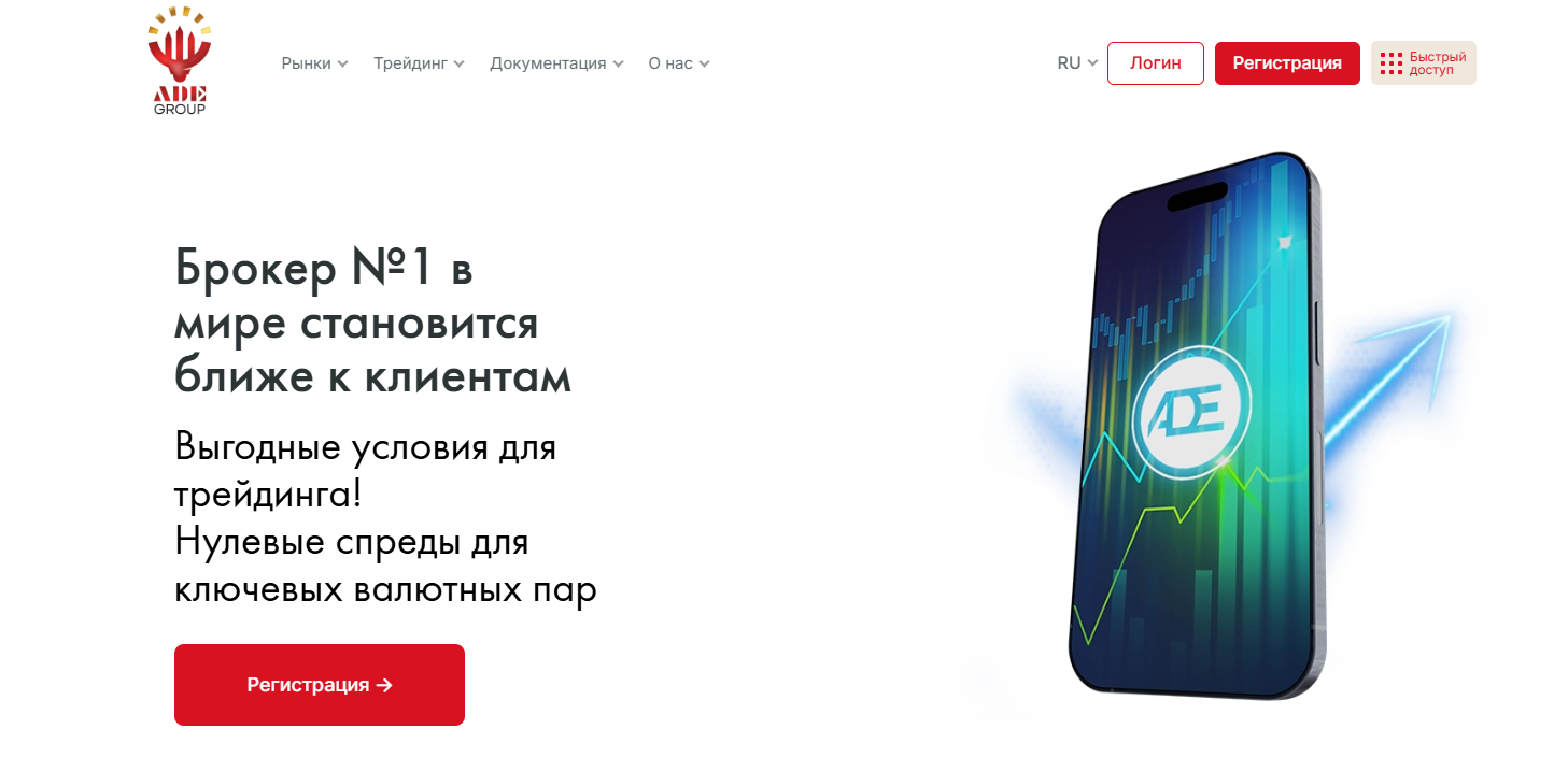 Ade Group — торговая площадка с широкими возможностями выбора инструментов. Репутация компании неоднозначна, а в ее заявлениях присутствует ложь.