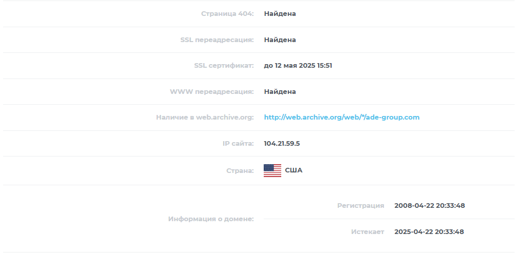 Мы изучили сайт брокера Ade Group syrboyi kzc с помощью сервиса 2ip и вот какие результаты были получены: