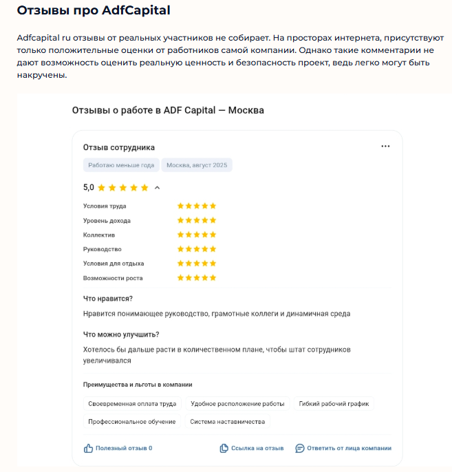 Наша команда выделила причины, почему «АДФ Капитал» считается сомнительным проектом: