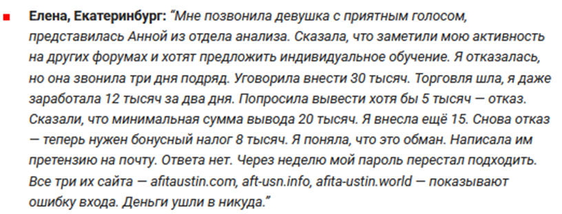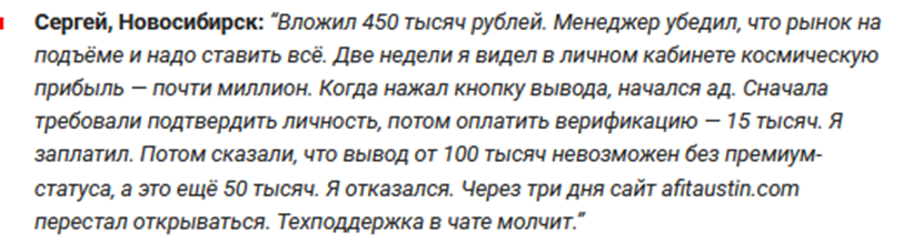 Отзывы трейдеров о работе с Afitaustin