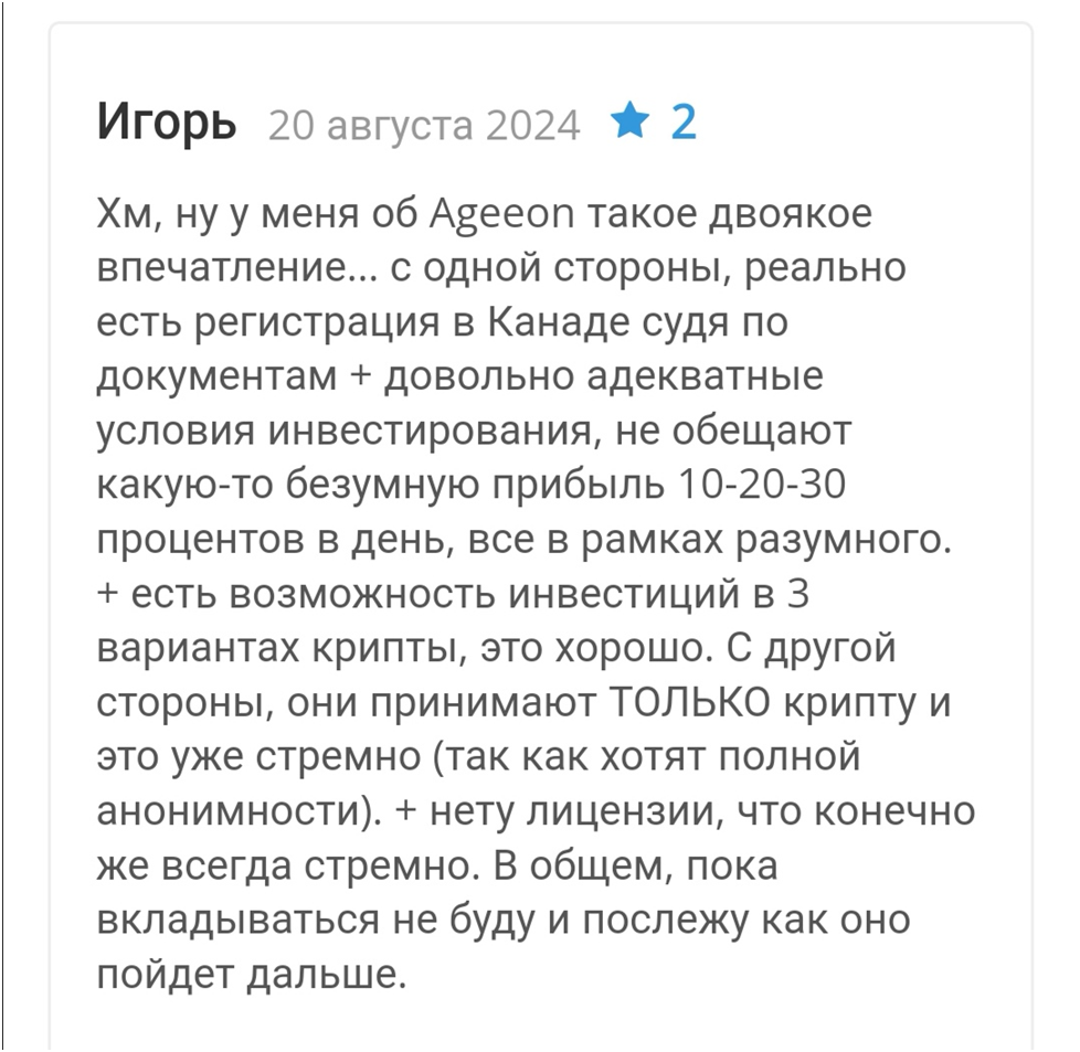 Отзывы о Ageeon Com