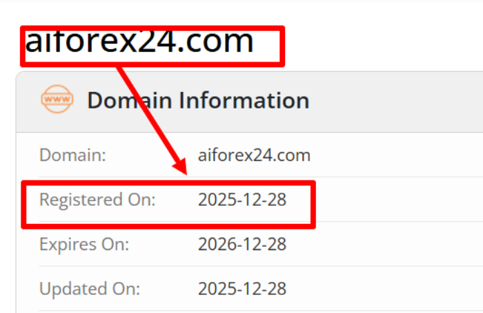 На ресурсе заявлено, что основатели организации занимаются предоставлением услуг для инвесторов и трейдеров долгое время. Проверка домена Aiforex24 через «Who Is» показала, что он был зарегистрирован в 2025 году.