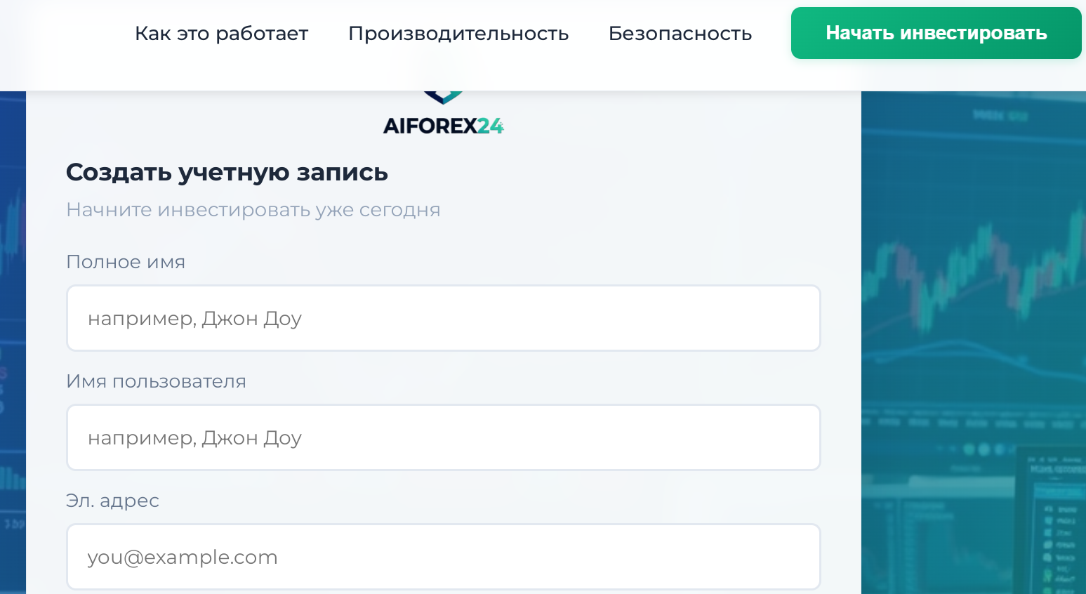 Мы не рекомендуем торговать на инвестиционной платформе Aiforex24, так как трейдеры и инвесторы могут потерпеть убытки и лишиться собственных валютных сбережений.