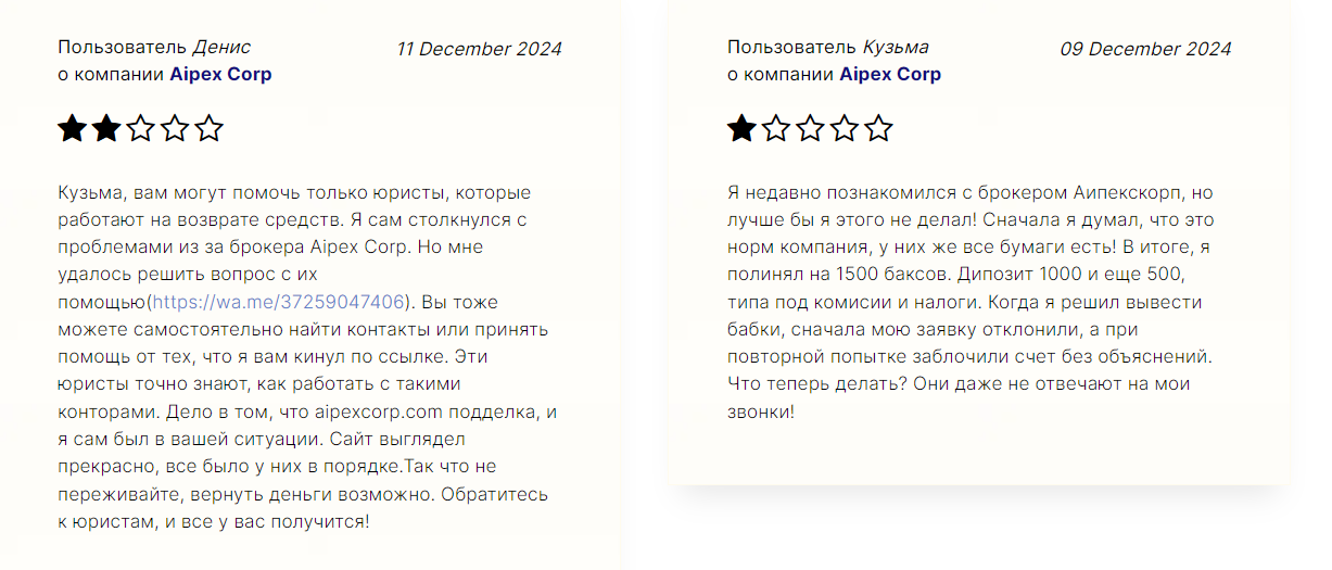 Если у вас есть отрицательный или положительный опыт работы с Aipex Corp Limited, поделитесь, пожалуйста, им в комментариях к данному обзору