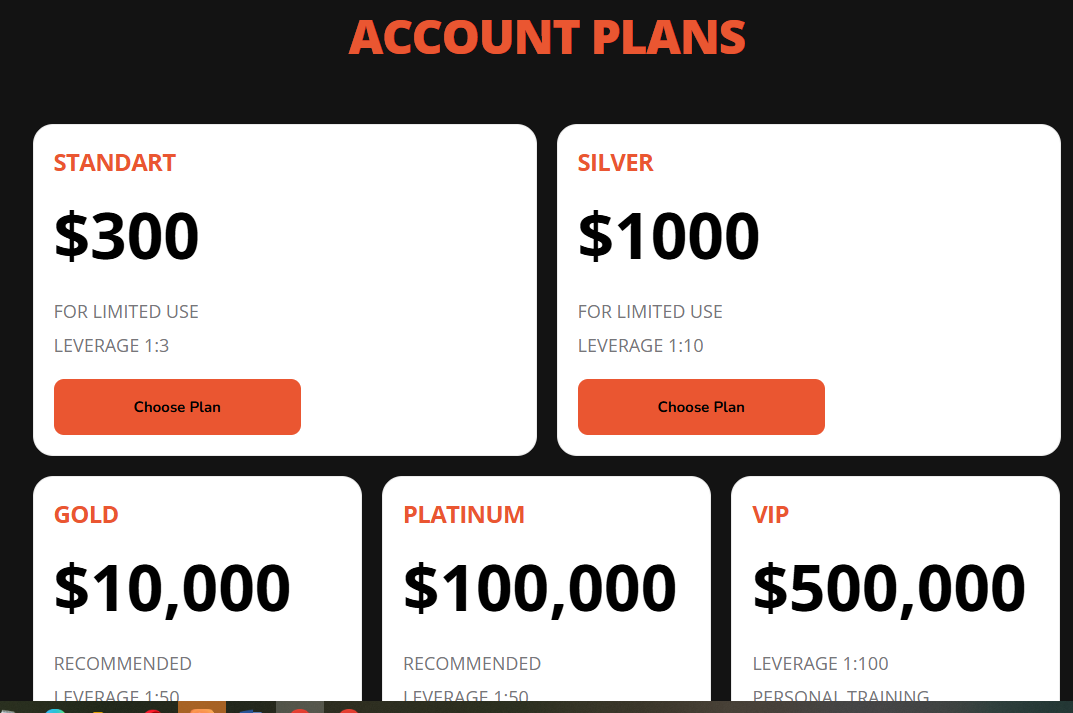 - Standart стоит $300 включает кредитное плечо 1:3. Разработчики заявляют, что это своего рода демо-доступ к платформе. Но тогда не ясно почему за него должны платить клиенты брокера.