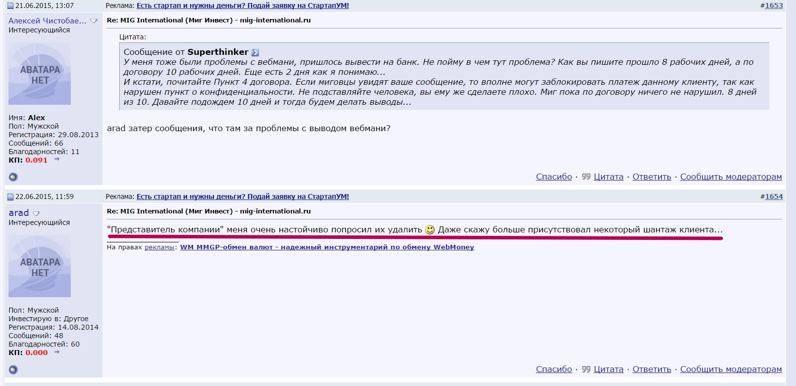 - Разработчики ранее уже вели подобный проект «МИГ Инвест» и обманули сотни вкладчиков.