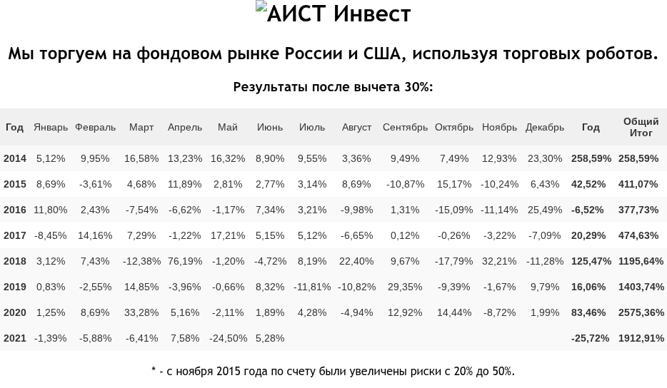 - Постоянный рост капитализации пирамиды «Аист Инвест».