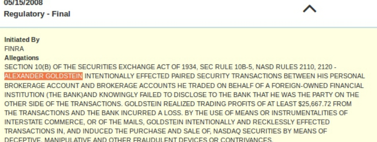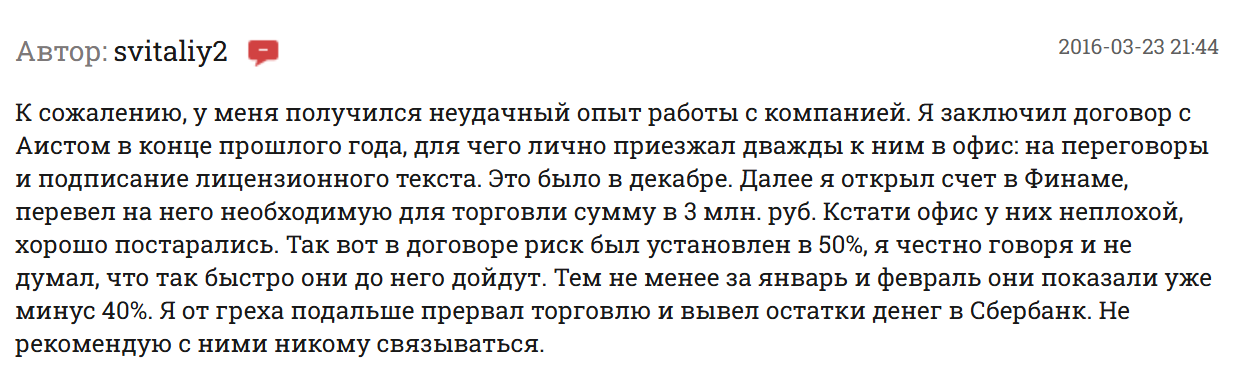 На сайте «АистИнвест» команда указала, что средства хранятся на сегрегированных счетах лицензионных брокеров. Однако, разработчики умолчали о том, что еще в 2008 году регулятор FINRA искал, куда Александр Гольдштейн переливал деньги.