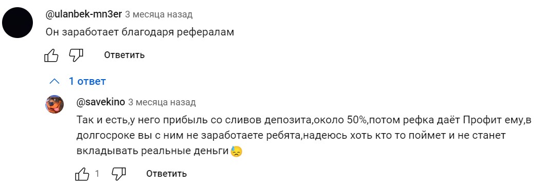 На сторонних сайтах есть много отзывов клиентов о Ютубе Академия Трейдинга Роберта и других его сообществах в социальных сетях. Утверждают, что он зарабатывает не на трейдинге, а на рефералах.