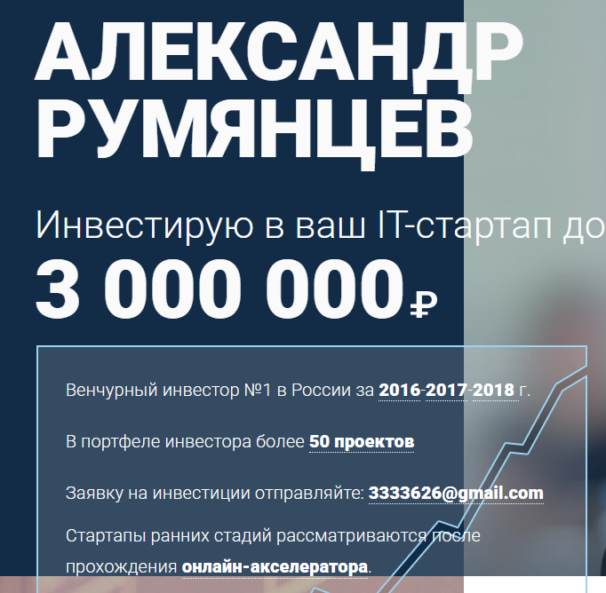 Если у вас есть подходящий стартап, вы вполне можете написать Румянцеву письмо с просьбой о финансировании. Успех не гарантирован, но если повезет, у вас будет дополнительный источник инвестиций для развития.