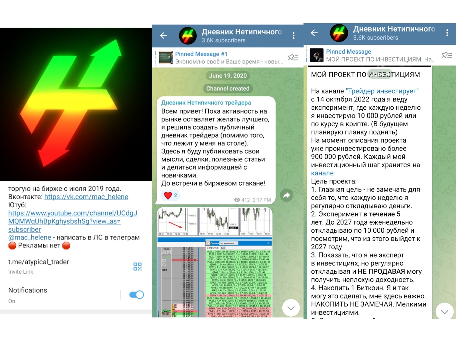Телеграмм канал Дневник Нетипичного Трейдера был создан 19 июня 2020 года. На данный момент на него подписано 3.6k пользователей.