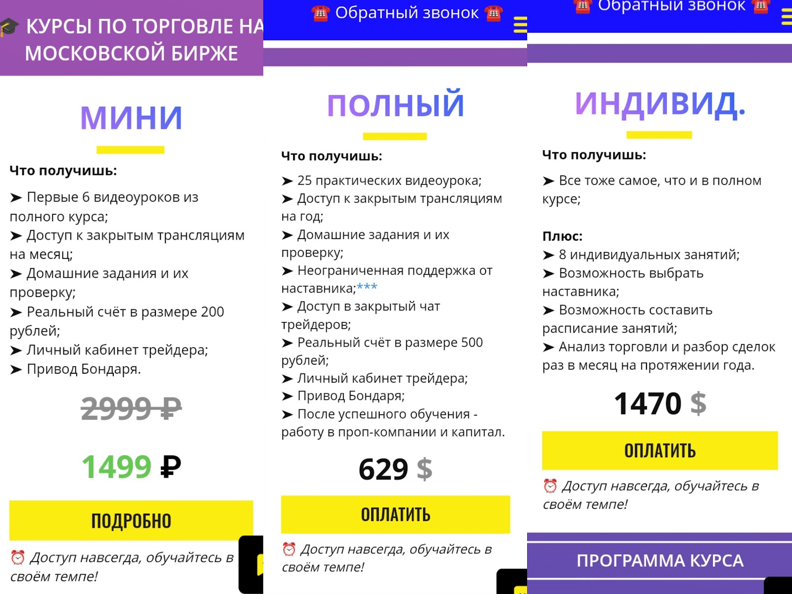 Вроде бы инфа есть, вроде и курсы… Но 1,5К баксов за индивидуальный разбор? 😳 Блин, я за такие деньги ожидал личного звонка с Уорреном Баффетом!))) А тут обычные вебинары, которые можно найти бесплатно. Ну такое, явно не для всех.