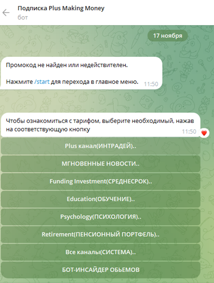 - Доступ к боту-инсайдеру объемов – месяц доступа стоит 790 рублей.