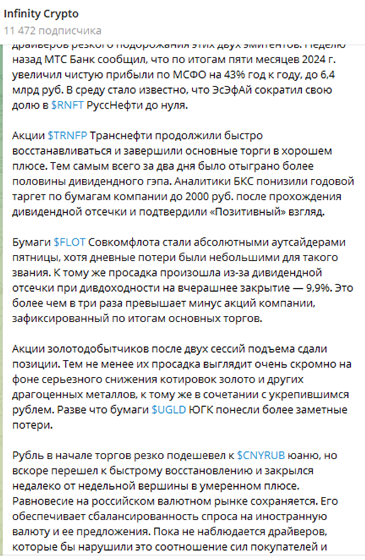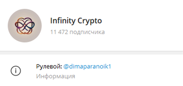 Но летом 2024 канал неожиданно сменил тематику и название на Infiniti Crypto. Вести его стал некий Дима Параноик под ником Dimaparanoik1. И теперь посты на канале посвящены только крипте. Хотя может быть ранее владел каналом именно он, просто представлялся Аленой.