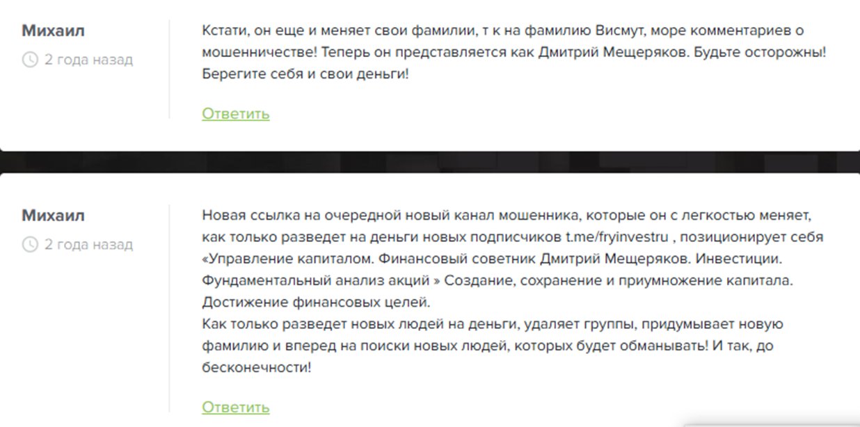 Зато на ныне существующий Infinity Crypto, точнее на его владельца Дмитрия, есть масса отрицательных отзывов. Пользователи утверждают, что мужчина – мошенник и постоянно меняет имена и фамилии.