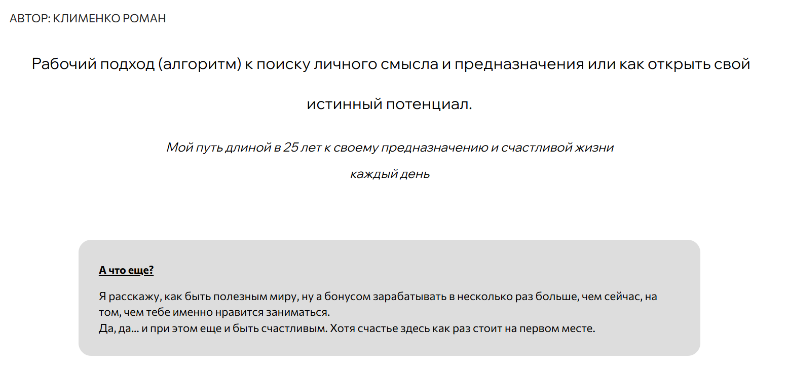 Курсов Алхимия Трейдинга не выпускает, Роман ведет только обучение личностного роста. Стоимость программы Основы Предназначения — 999 рублей. В нее входят 4 теоретических урока, 4 домашних задания и практика. Еще один курс — Поиск предназначения. Это второй этап развития клиента, цена та же. Если пользователь хочет получить максимум пользы от программ Романа, то стоит выбирать тариф со стратегической сессией, он обойдется в 12 900 рублей.