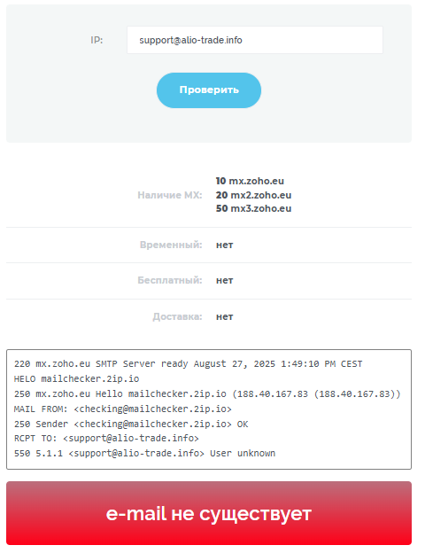 Мы не рекомендуем связываться с alio info ink, поскольку организация может оказаться мошеннической.