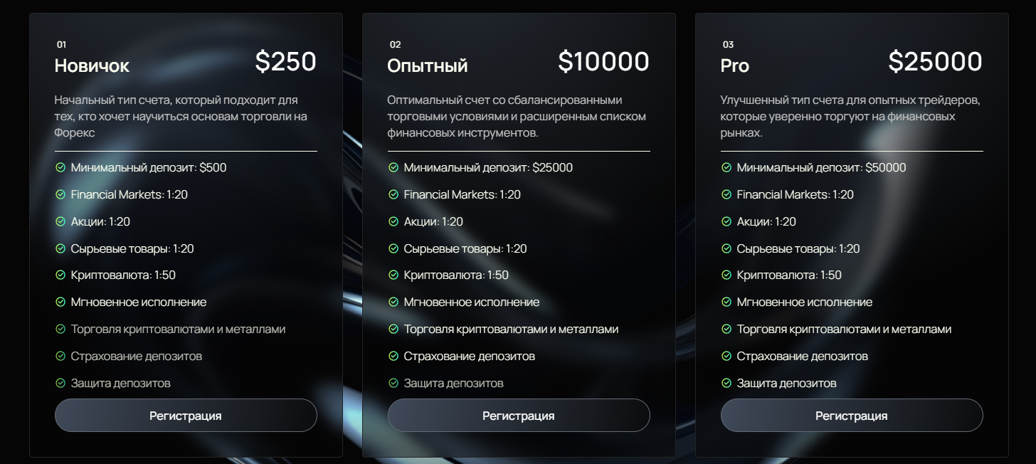 Вначале пользователю нужно выбрать один из типов кошелька. Все зависит от суммы депозита. Для новичков рекомендуют внесение средств на сумму от $250.