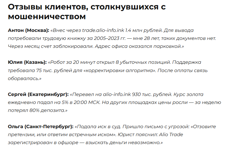 Обзор на брокера Alio Trade: отзывы пользователей о терминале trade alio info ink и анализ безопасности организации «АлиоТрейд»
