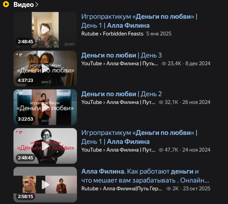 Про игропрактикум «Деньги по любви» и другие продукты Алла Филина рассказывает публично – в популярных социальных сетях и мессенджерах. В том же Телеграмм она распространяет мотивирующий контент, личные инсайты. В приглашениях к сотрудничеству AllaFilina подчеркивает, что деньги и счастье приходят не через боль и жертвы, а через внутреннюю гармонию и опору на себя.