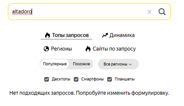 Платформа altadoro com не пользуется большой популярностью. Название брокера за последний месяц люди вообще не искали в интернете.