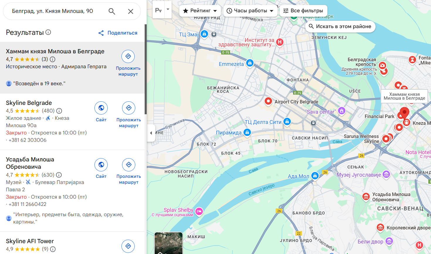 Любопытный факт – при проверке указанного адреса, гугл выдает историческое место – Хамам князя Милоша в Белграде. Ни о каком банке там нет упоминания.