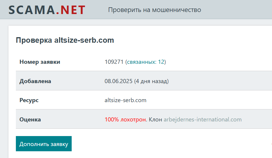 Исходя из выявленных фактов, мы не рекомендуем использовать услуги Altsize Serb com.