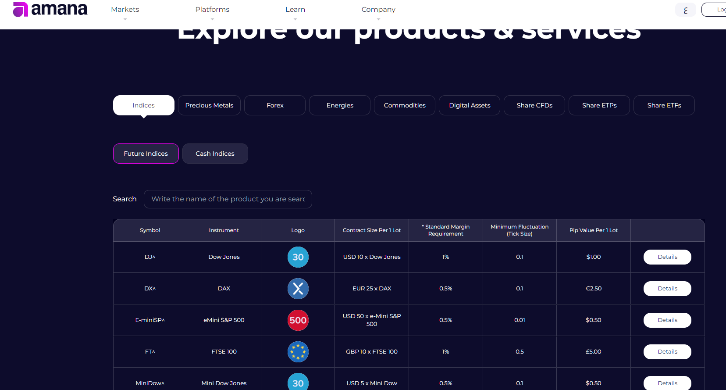 Кроме фиатных валют брокер Amana trade предлагает торговлю акциями, облигациями, цифровыми активами, металлами и сырьевыми товарами, криптовалютами. Базовые условия трейдинга на платформе Amana брокер:
