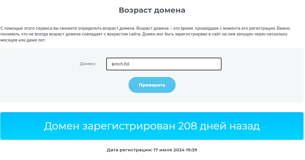 Однако обычная проверка возраста домена опровергает данное утверждение. Сервис показывает, что сайт был создан всего чуть более полугода назад – о 2022-м не может быть и речи.