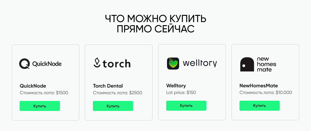 Опускаемся немного ниже и видим, что именно может купить клиент компании. Минимальная стоимость лота здесь $150. Причем такой проект всего один, а в остальные вообще придется вложить от $1500 до $10000.