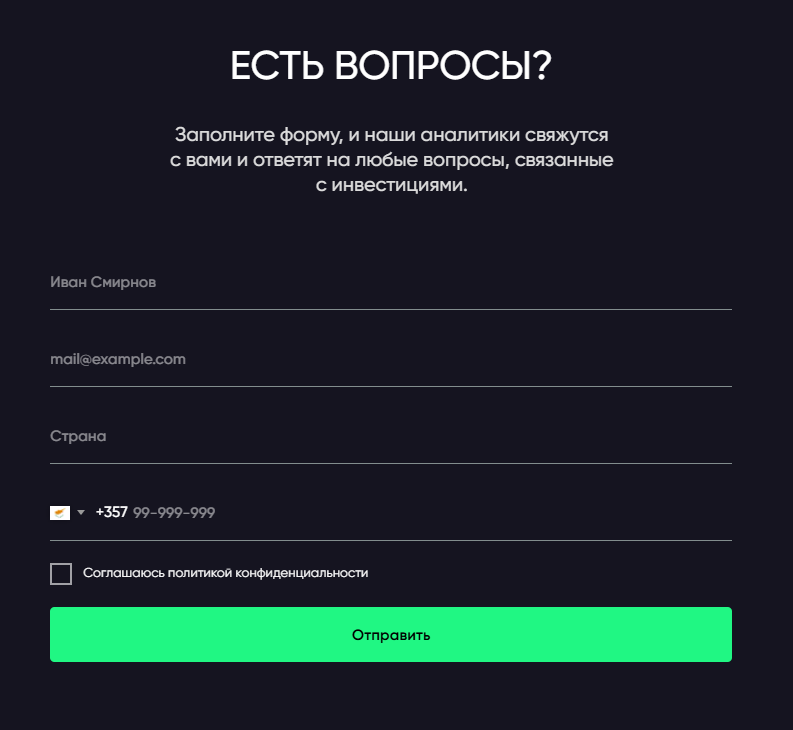 На официальном сайте посетителю сразу представляют все плюсы, которые он получит при сотрудничестве. В этом аспекте им вряд ли кого-то удастся убедить, т.к. пункты здесь очень абстрактные. Вряд ли кого-то может убедить “перспективный рынок”, “надежные сделки” и прочее, т.к. нет четких критериев, по которым можно это оценить.