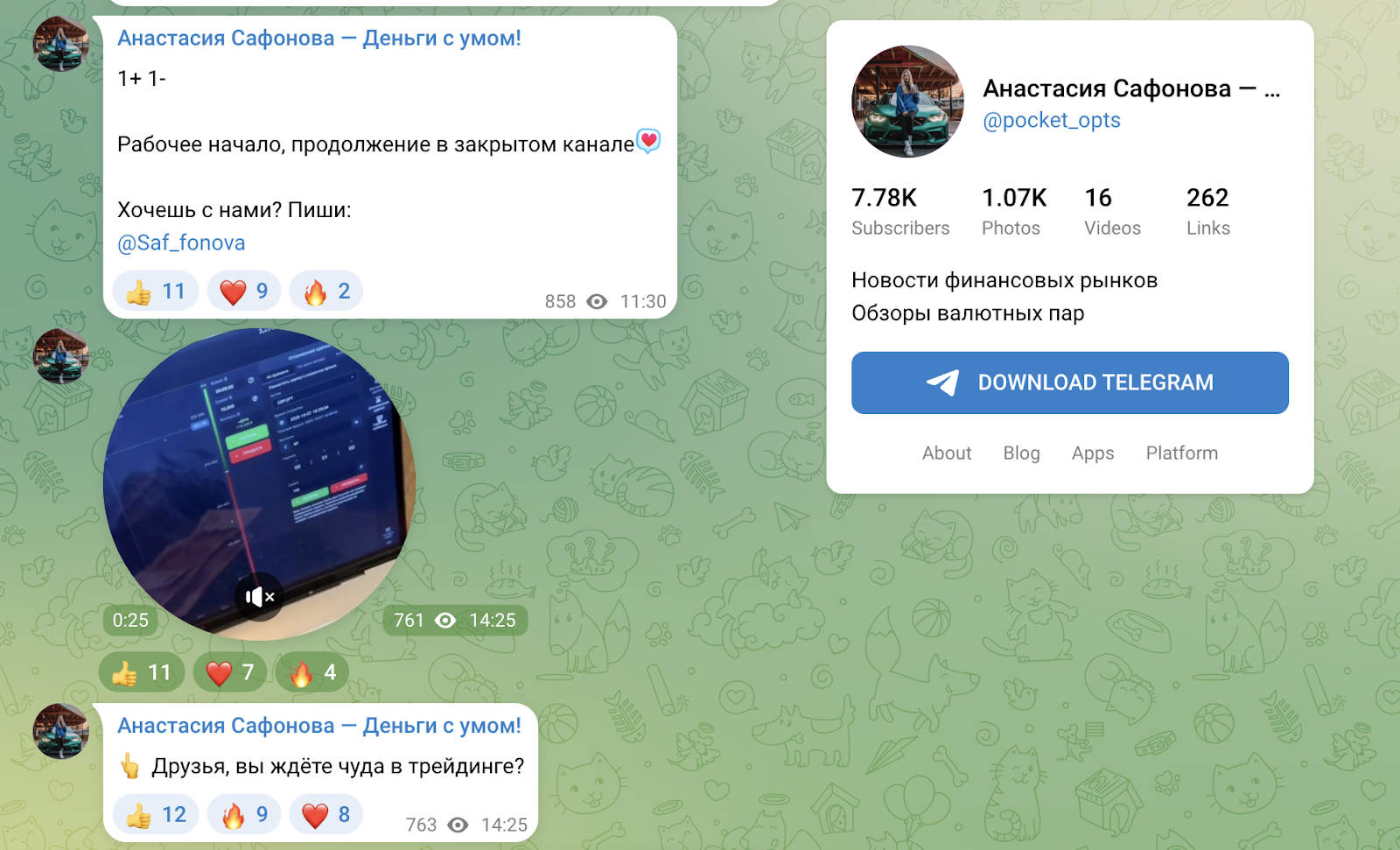 Анастасия Сафонова Деньги с умом — телеграм канал, оформленный вокруг личности трейдера и авторских торговых предложений. В описаниях и постах заметны приглашения в ВИП и обещания сопровождения торговых сессий. Далее подробно рассмотрим работу трейдера Анастасии Сафоновой, отзывы в сети и можно ли считать проект честным.