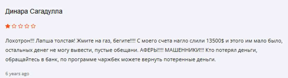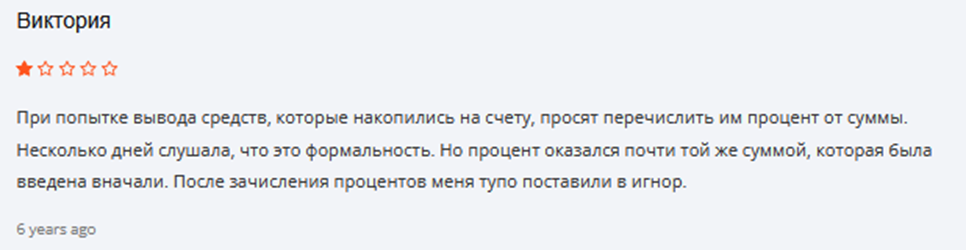 При общении с клиентами брокера Анна основной акцент делала на профессиональной помощи в получении денег. Но за это нужно было заплатить комиссионные. Если у трейдера на площадке зависала очень большая сумма, у него могли потребовать за срочность от 300 тысяч и больше. В некоторых отзывах говорится, что размер такого дополнительного платежа поднимался до миллиона рублей.