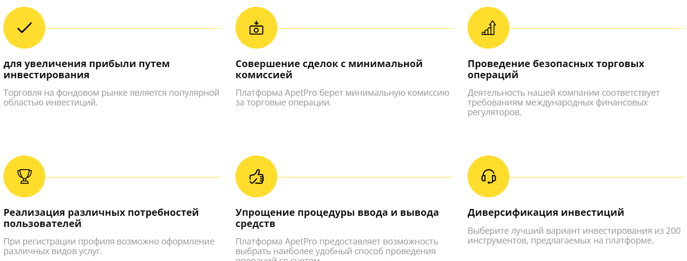 ApetPro — брокер, позиционирующий себя как площадка для онлайн-трейдинга и управления инвестициями. Сайт апеллирует к широкому спектру активов, обещая простой вход в рынки и набор обучающих материалов. В обзоре узнаем, как ведет себя брокер на практике, что он предлагает и какие отзывы можно встретить в сети.