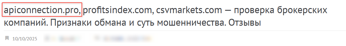 • Портал Api Connection pro существует около месяца, что указывает на недостаток опыта в работе с клиентами и потенциальные трудности.
