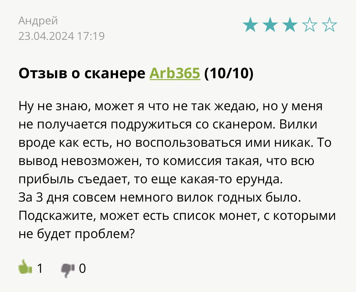 Некоторые пользователи на других платформах сообщают о недостаточным количеством прибыли арбитражных возможностей. Также отмечаются проблемы с выводом средств и высокими комиссиями на некоторых биржах.