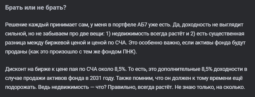 Это называется дисконт, то есть, инвесторы выставляют рыночную цену ниже, чтобы заранее выйти из фонда, а не ждать до 2031 года, а расчетная стоимость пая «Современный арендный бизнес 7» от «Сбербанк» формируется самой управляющей компанией.Обзор социальных сетей и официального сайта