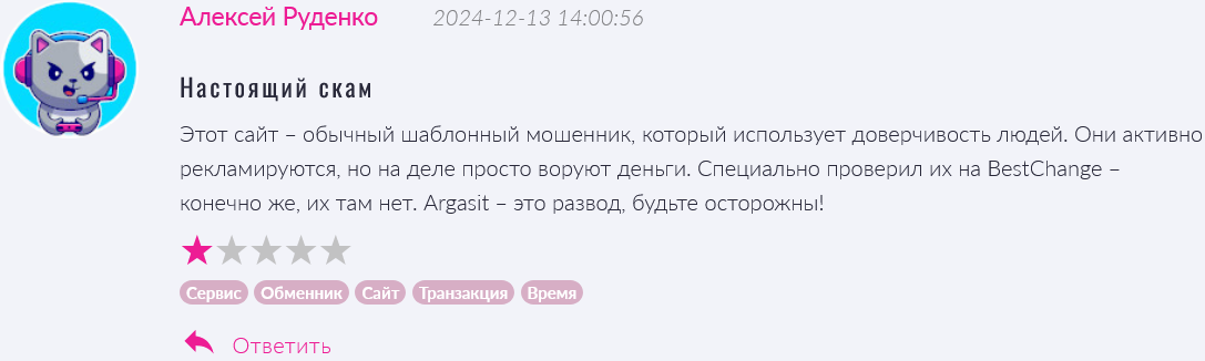 Обзор критптовалютного онлайн-обменника ArgaSit com: разбор принципа работы сервиса ArgaSitcom и реальные отзывы пользователей о платформе «АргаСит»
