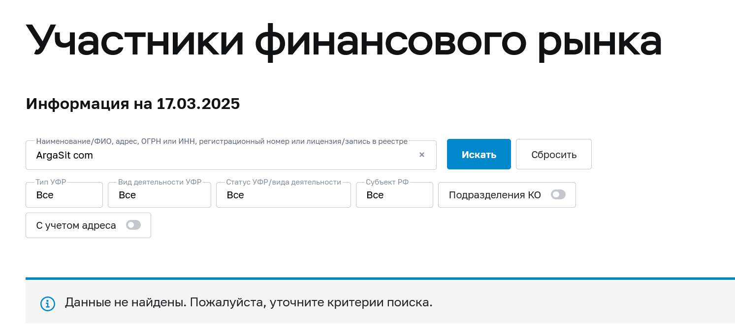 Обменник ArgaSit com отзывы о себе собрал только отрицательные. По неизвестным причинам, в марте 2025 года проект заблокирован. В этой статье мы узнаем, как работал сервис, какие условия конвертации были доступны пользователям, а также узнаем, реально ли здесь было заработать.