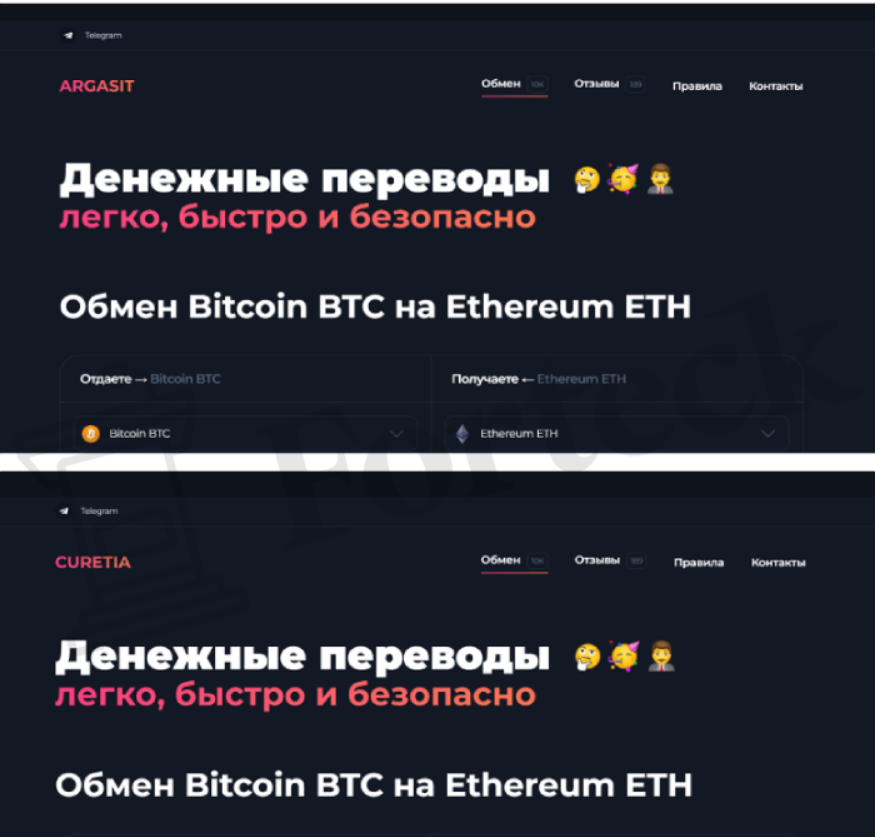 Клиентам ArgaSit предлагали совершать обмен крипты BTC в ETH быстро и выгодно.