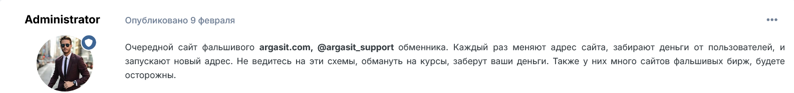 - Наличие сайтов-клонов свидетельствовало о сомнительной репутации ресурса. Этот факт подтверждают и отрицательные отзывы о ArgaSit.