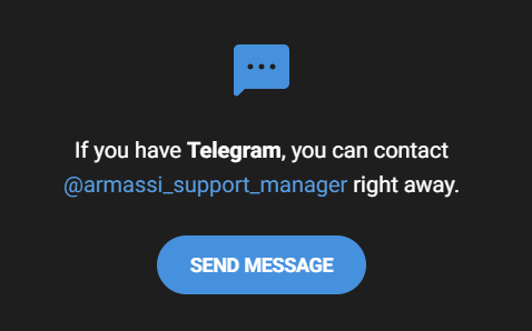 Сразу проверим работу службы поддержки aramassi support manager, которая здесь работает в мессенджере Телеграмм.