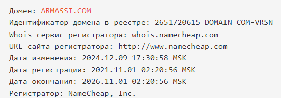 Онлайн обменник криптовалюты «Армасси» предлагает быстрый способ перевода средств в различную крипту через встроенную платформу обмена. Домен проекта зарегистрирован в 2021 году, однако срок работы на нем финансового сервиса неизвестен.