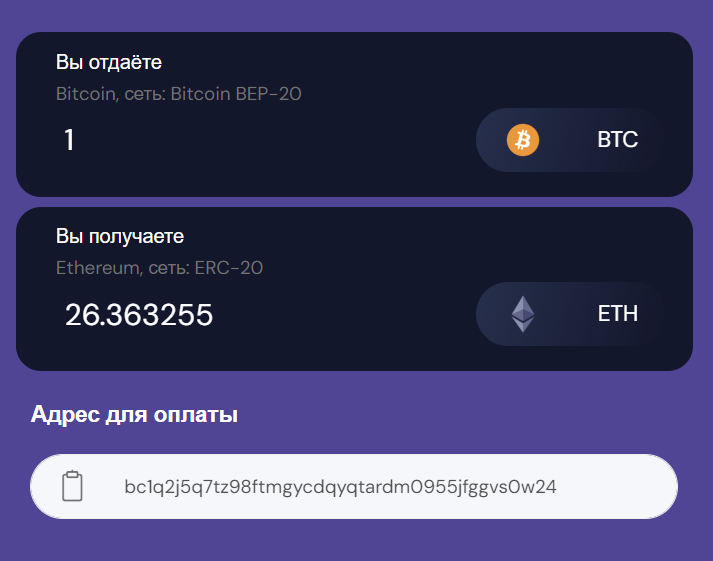 Свои средства перед операцией необходимо перевести на указанные сервисом криптокошелек. Кто конечный получатель неизвестно.