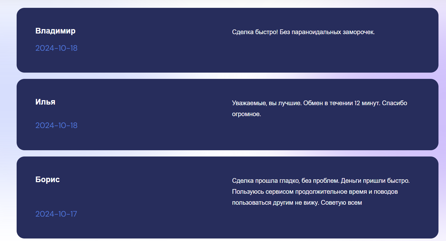 На своем сайте проект выделил отдельный раздел с отзывами о своей работе. Мнения здесь только положительные, однако самые свежие отзывы на момент написания обзора в декабре 2024 года были оставлены 2 месяца назад.