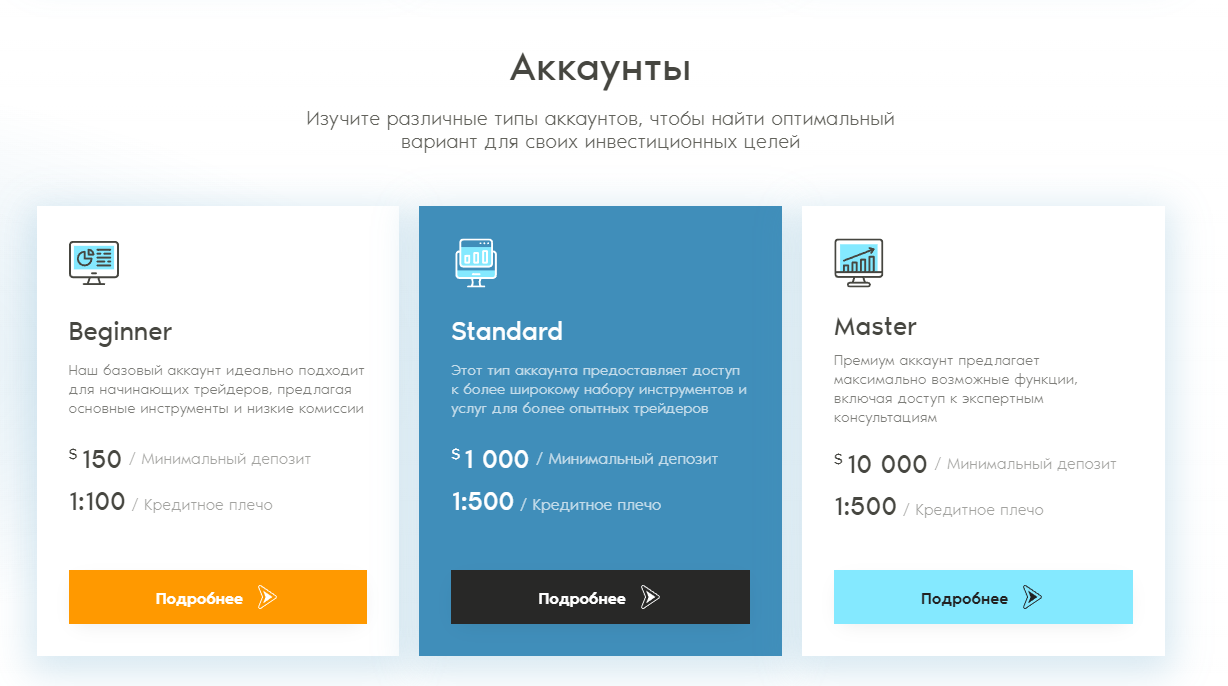 Подобные предложения имеет двусторонний характер: положительный, так как и новички и профессиональные трейдеры смогут заработать нужную прибыль. отрицательный, потому что подобное разделение торговых условий среди людей в основном используется только среди мошенников. Новичкам для пополнения требуется лишь 150 долларов, но если вы выбираете тип Master, будьте готовы пополнить свой аккаунт 10 тысяч долларов. Брокер обещает минимальные комиссии при пополнении и выводе. Проводить сделки на рынке можно с помощью различных инструментов.