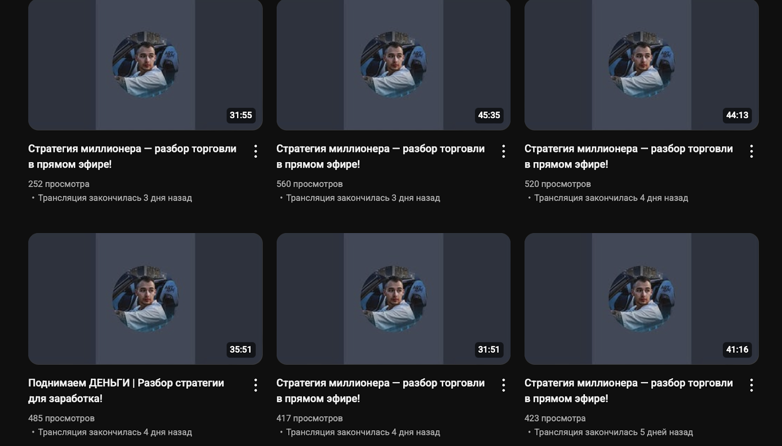 «АртМани» на Ютубе ведет от двух трансляции в сутки, на которых демонстрирует сделки на бирже, показывает методы заработка денег на инвестициях. Анализирует динамику активов, дает прогнозы по доходности сделок.