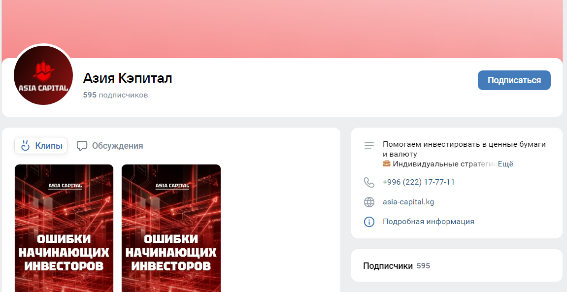Группа ВК Asiacapital ведется с 2023 года, и здесь 500+ подписчиков.